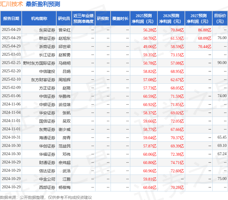 最新盈利预测明细如下: